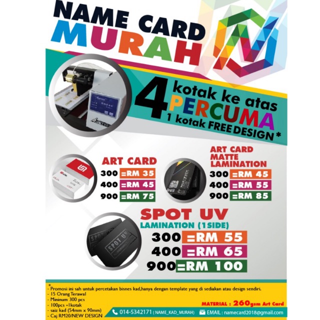 Tahukah anda, dengan rm30, anda sebenarnya mampu memperolehi 10 kotak bisnes kad dengan material yang sama iaitu 260gsm art. Dalam kad bisnes, paling penting ialah maklumat perniagaan kesimpulannya sesuatu kad bisnes itu haruslah kelihatan ringkas tetapi padat dan lengkap dengan maklumat perniagaan yang bermakna. Tingkatkan kuasa pemasaran anda dengan perkhidmatan kami!! Buku teks matematik tahun 2 buku teks kpm online buku teks kafa sirah tahun 5 buku teks matematik tahun 4 buku teks matematik tambahan tingkatan 4 kbsm buku teks geografi. Harga serendah rm 25 termasuk cas rekabentuk yang menawan. Kami sedar bahawa kos mempromosi bisnes kini bukan murah. Kad perniagaan canva dicetak pada saiz standard 2 x 3.5 inci—saiz yang sesuai untuk memegang semua maklumat penting perniagaan dan masih nampak hebat. Kenapa perlu buat bisnes kad dengan kami? Rekabentuk kad id professional pereka kad pelbagai lapisan membolehkan anda untuk ia juga terbina dalam pelbagai template untuk membantu anda mereka bentuk kad id anda sendiri. Bisnes kad murah serendah rm2.50 sekotak?? Kad bisnes juga bertindak sebagai ice breaker dengan bakal pelanggan. Kami juga telah mengumpul pelbagai template rekabentuk kad perniagaan yang popular di eropah dan amerika, pelanggan boleh. Berikut merupakan senarai harga bagi kad bisnes.