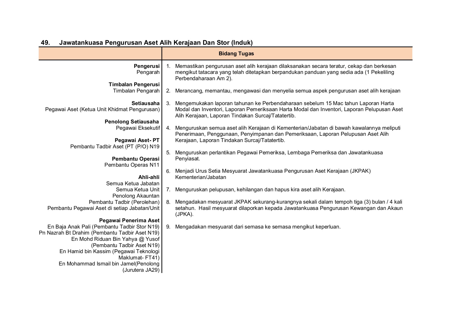 Membantu merancang, memantau dan mengemaskini mengemaskin i senarai nama dan kedudukan.